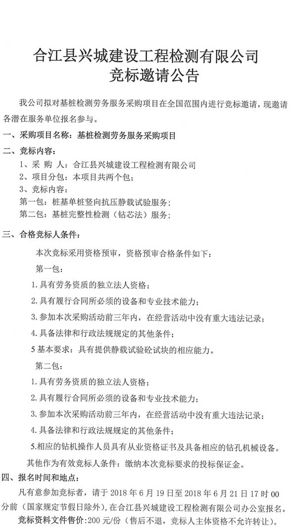 合江縣興城建設(shè)工程檢測有限公司邀標公告.docx
