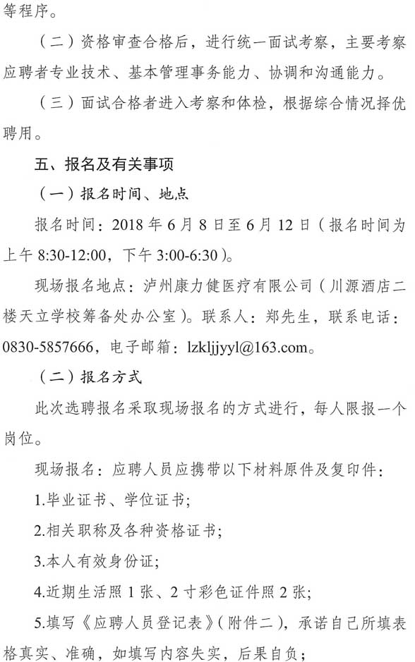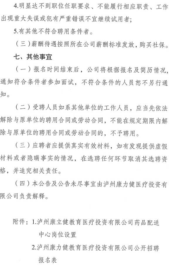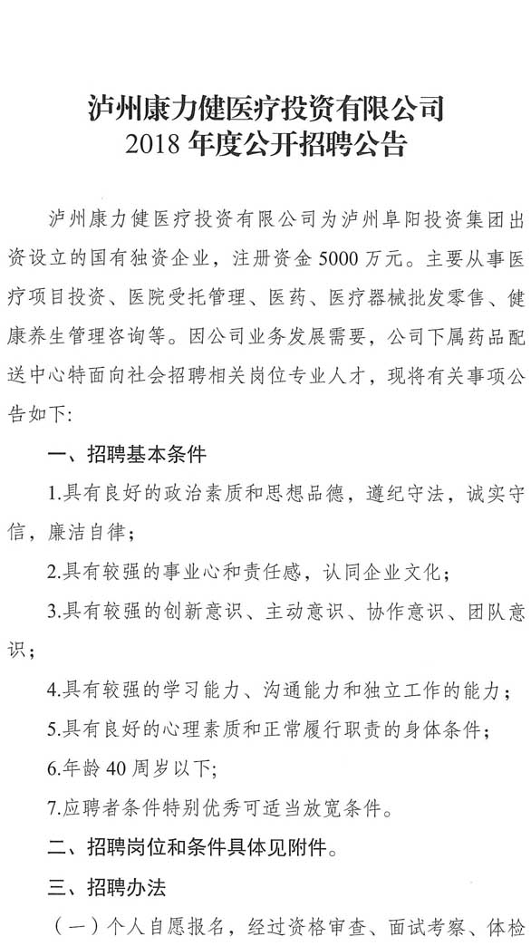 招聘公告:瀘州康力健醫(yī)療投資有限公司2018年度公開招聘公告